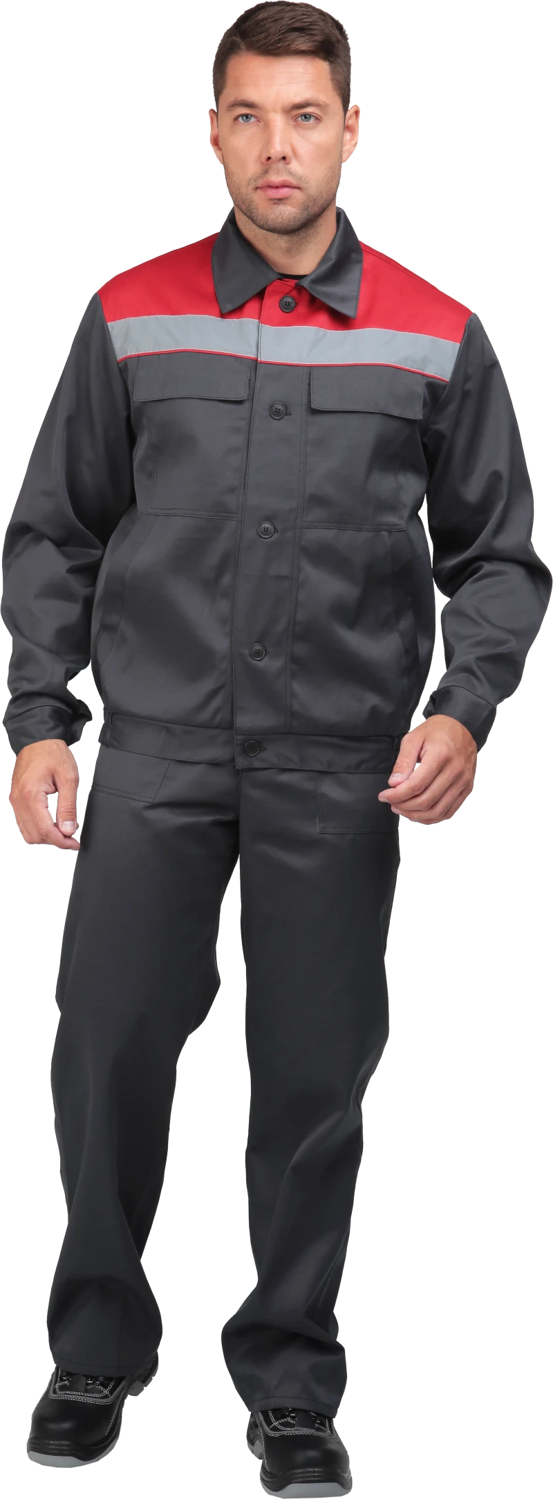 Костюм МАСТЕР ПРОФИ летний, серый-красный (Куртка+полукомбинезон)