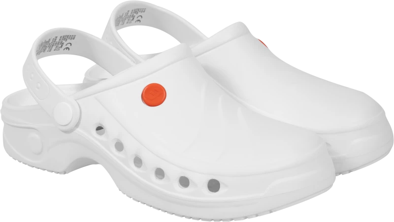 Особенности: Перекидной ремешок. Отверстия в передней части стопы выполняют функцию вентиляции. Уход за моделью можно осуществлять при помощи моющих средств, ультрафиолетом или в машинке при температуре до 40° C. ESD антистатические свойства согласно Европейской Директивы.