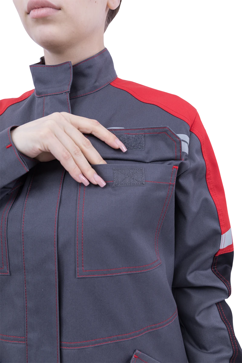 Куртка женская ХАЙ-ТЕК SAFETY от механических воздействий и ОПЗ, серый/красный/черный