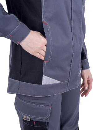 Куртка женская ТУРБО SAFETY от механических воздействий и ОПЗ, серый/чёрный/красный