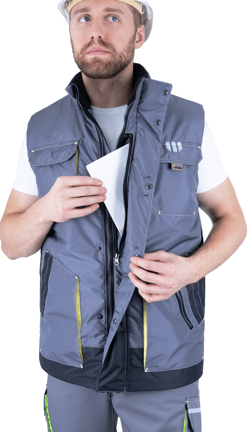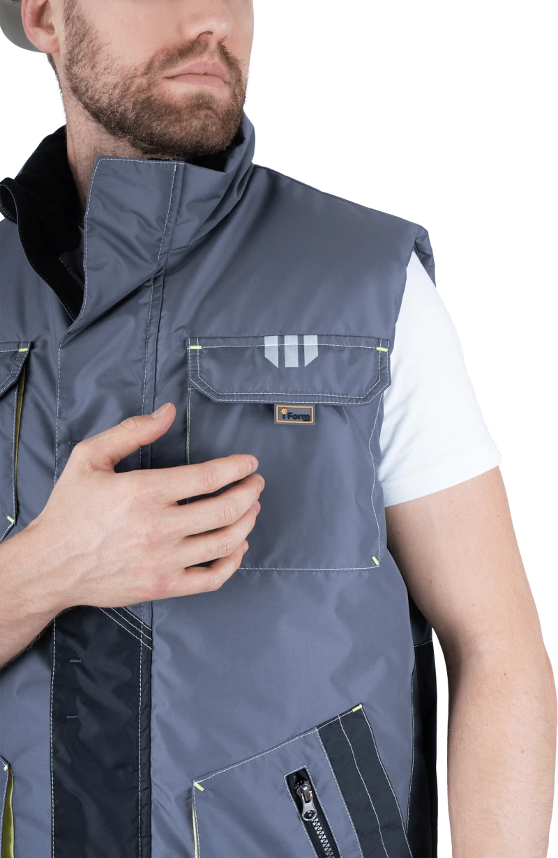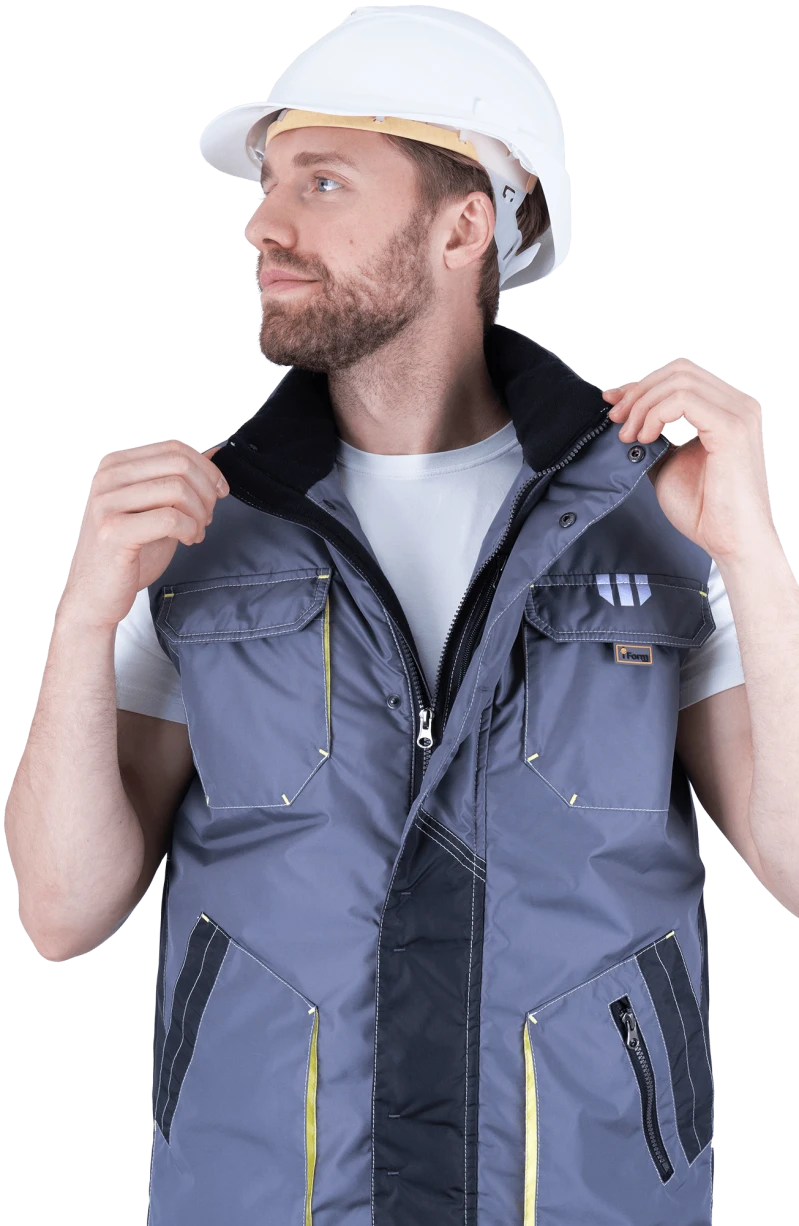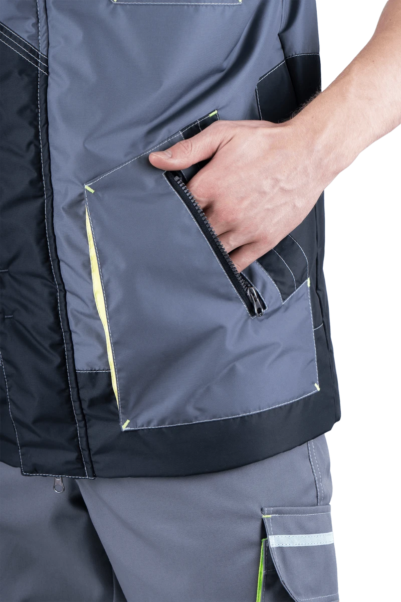 Жилет мужской ЭДВАНС утепленный, серый/темно-серый/лимонная отделка