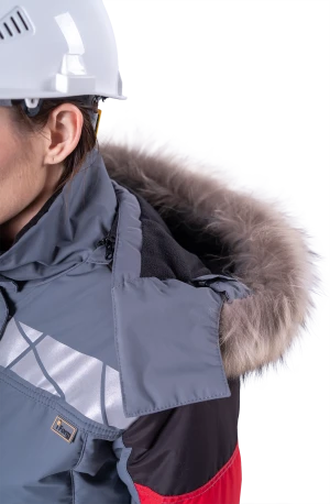 Куртка женская ХАЙ-ТЕК SAFETY от пониженных температур воздуха и ветра, механических воздействий и ОПЗ, серый/красный/черный