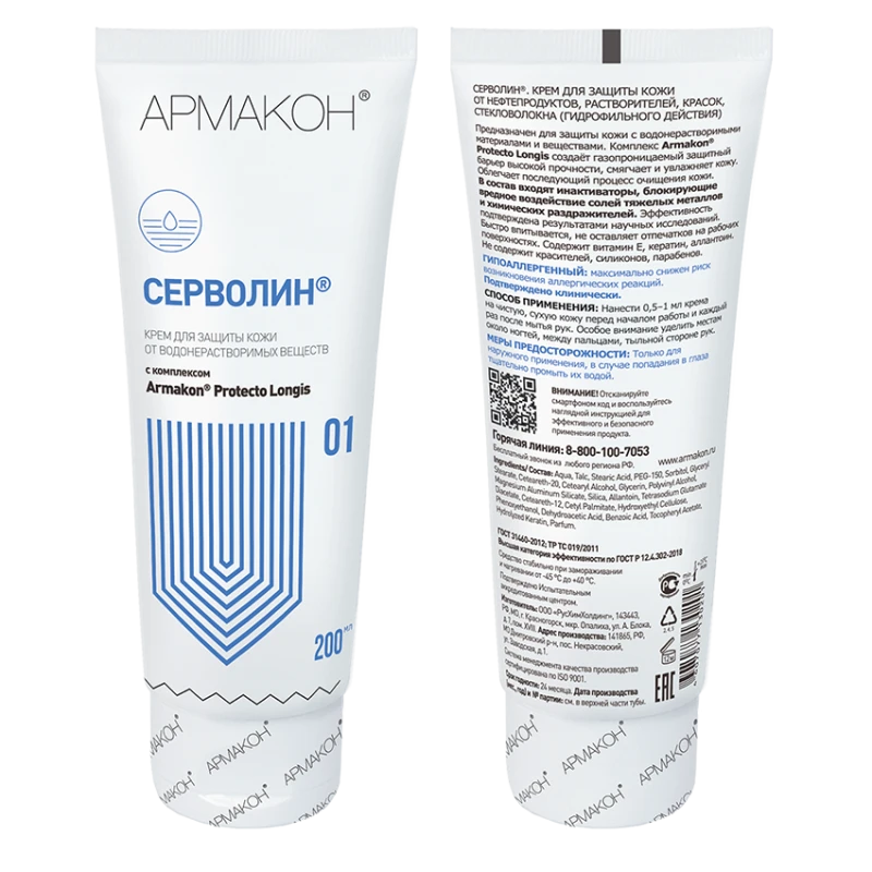 Покупайте Крем СЕРВОЛИН гидрофильный 200 мл , (1188) по цене 218.38 руб. оптом или в розницу в магазине спецодежды СнабТим. Большой выбор защитной одежды, СИЗ и других хозтоваров в Бавлах. Заказывайте онлайн или по телефону +7 (991) 190-59-22