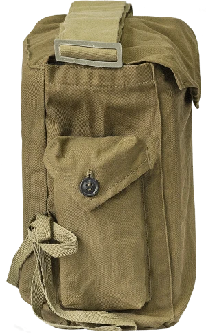 Имеет плечевой ремень, поясную тесьму с крепежами для регулирования длины, внешний карман для размещения комплектующих изделий противогаза.