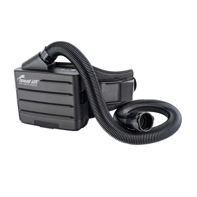 • Диапазон рабочих температур -5°C +55°C • Наименование по сертификату: Средство индивидуальной защиты органов дыхания фильтрующее с блоком принудительной подачи воздуха серии Стальной БАРС®, в составе: блок подачи воздуха Стальной БАРС® (арт. 140215) СИЗ фильтрующее для защиты глаз, лица и органов дыхания во всех средах, требующих высокой химической стойкости (твердые и жидкие аэрозоли: дым, пыль, волокна, туман) - блок подачи воздуха (БПВ) Стальной БАРС® с электронной системой регулирования и стабилизации расхода воздуха, подаваемого под лицевую часть, системой сигнализации запыления фильтра и разряда батареи, противоаэрозольным фильтром. Применяется для сварочных работ, шлифовки, в металлообработке, пищевых производствах, фармацевтической промышленности. Особенности БПВ: • вес 820 грамм • управление одной кнопкой • светодиодная панель управления Комплектация: крышка фильтра, искрогаситель, предфильтр, противоаэрозольный фильтр, корпус, сменная аккумуляторная батарея (Li-Ion 11.1 V/3000 мA·час.),